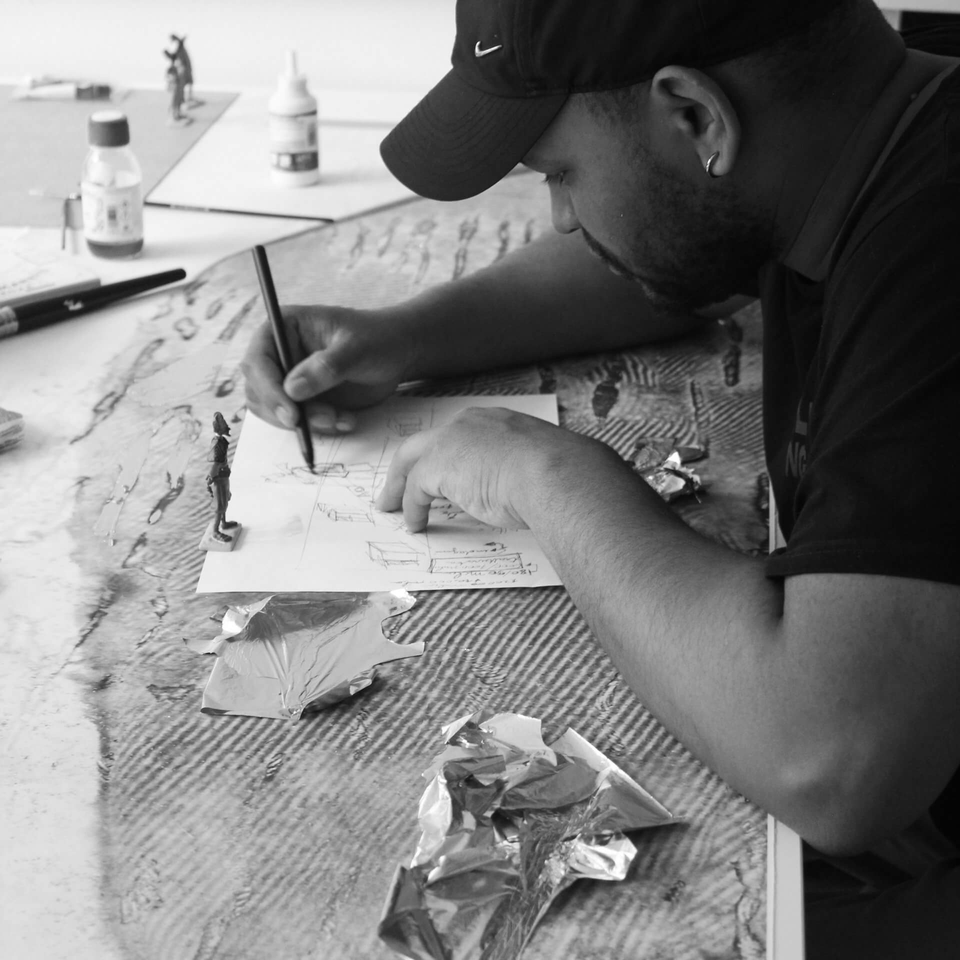 Es un artista multidisciplinar que entrelaza historias, realidades y simbolismo para crear obras de arte ricas en capas, que abarcan la pintura, textiles, escultura, cine y medios digitales.